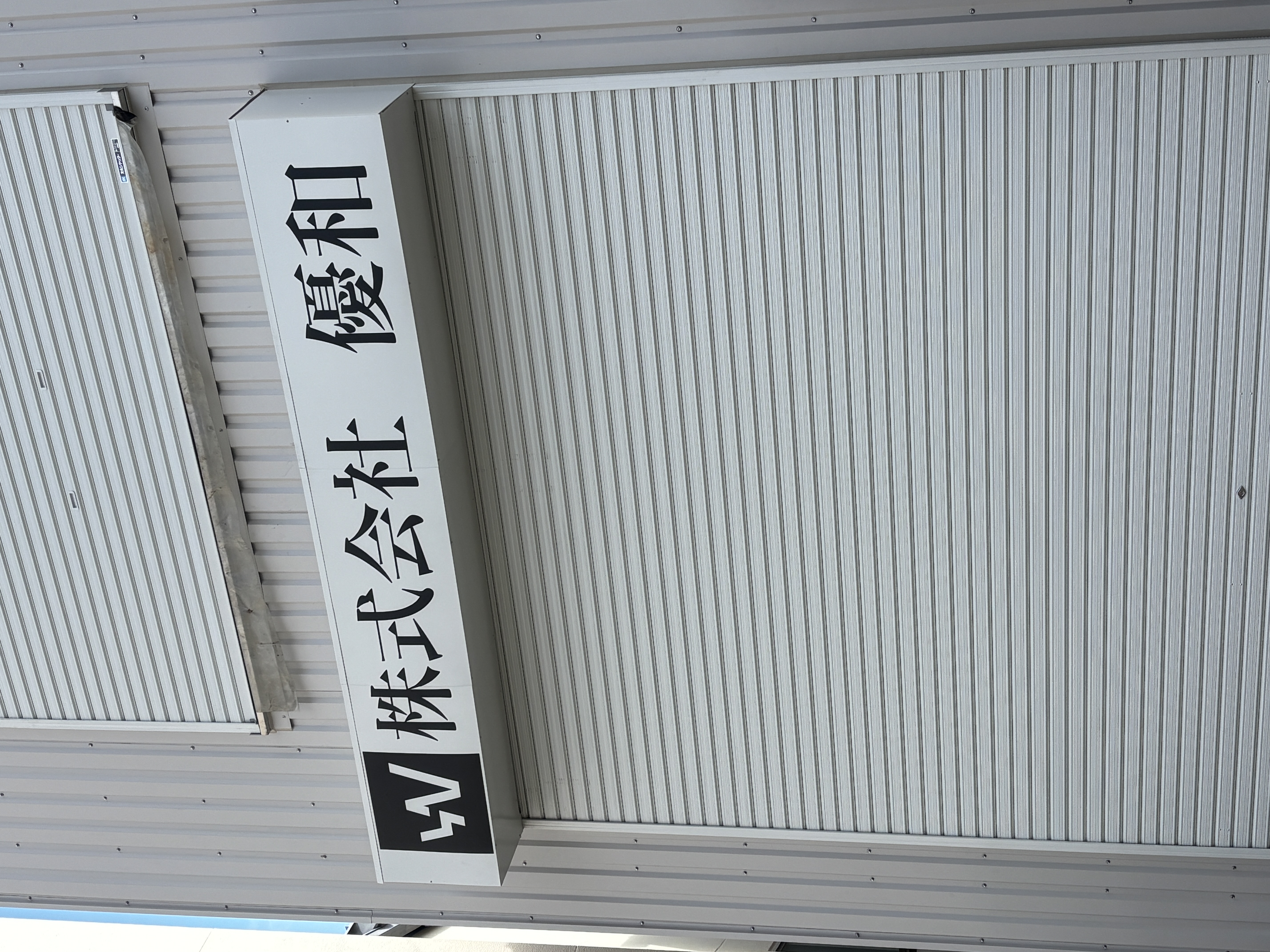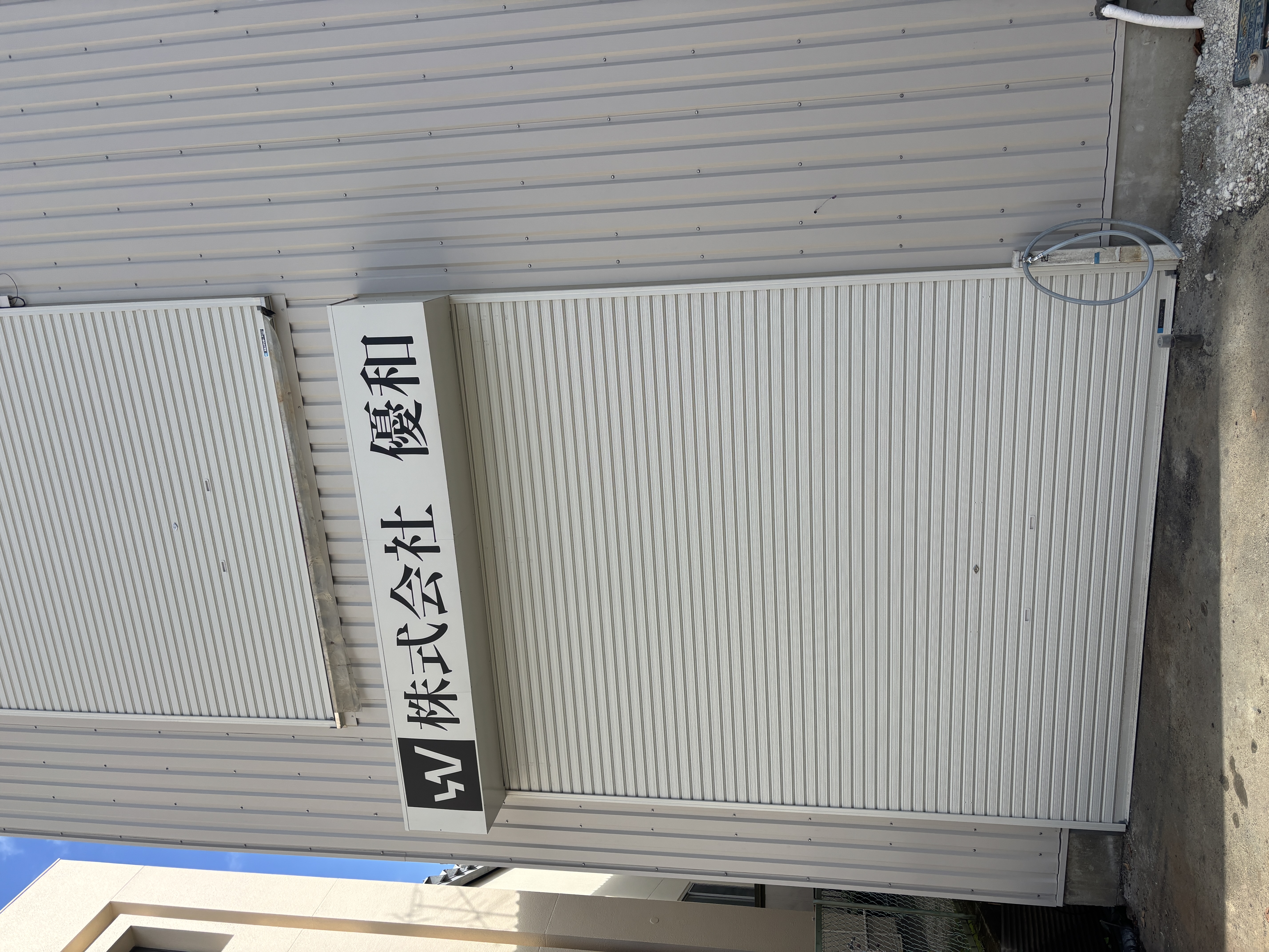 株式会社優和様、工場屋外のシャッターボックス前面にカッティングシートを貼り付けいたしました。