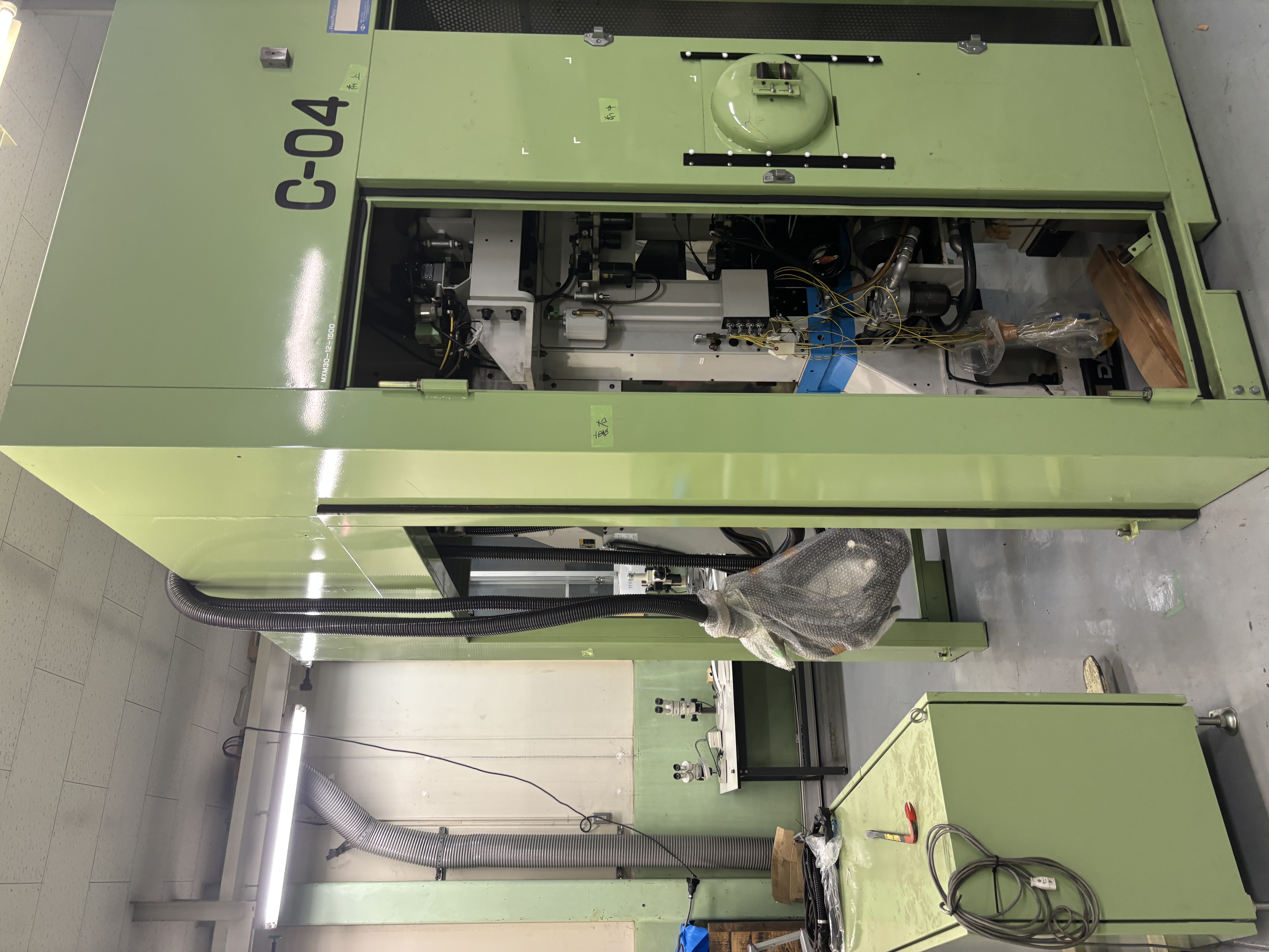 防音ボックスの位置関係、寸法を考慮しながらプレス機を配置し、再構築する作業となります。